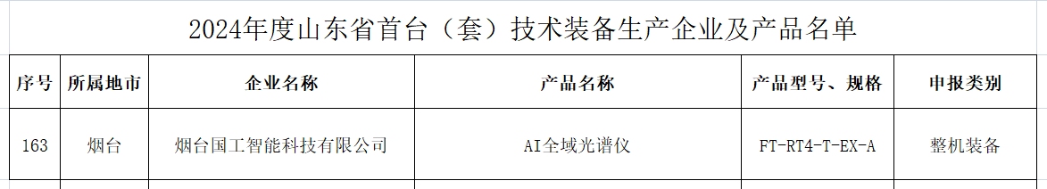2024年12月16日,自主研發(fā)的AI全域光譜儀入選《2024年度山東省首臺(套)技術(shù)裝備產(chǎn)品名單》,彰顯出國工智能在技術(shù)研發(fā)及產(chǎn)品創(chuàng)新的強勁實力,更加堅定了國工智能持續(xù)實施AI能力硬件化戰(zhàn)略。