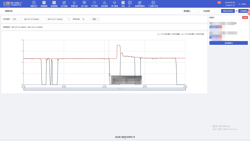 國工智能工業物聯網平臺具有數據監視以及數據趨勢分析的基本功能,我們可以通過數據趨勢分析功能對矢重秤歷史數據以及實時數據進行查看、追溯。