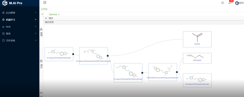 在新一代的人工智能框架下,把目標化合物分子結構輸入系統,人工智能依賴于全球上百萬份的文獻數據,能自動完成未知化合物合成路線的推理和推導工作。人工智能平臺帶有自學習功能,初次給出的合成路線不一定完全是符合企業的研發特征,但是經過持續的自我訓練,系統會學習并模擬企業的研發習慣,用料習慣,從而系統生成的合成路線將會無限接近企業特點。