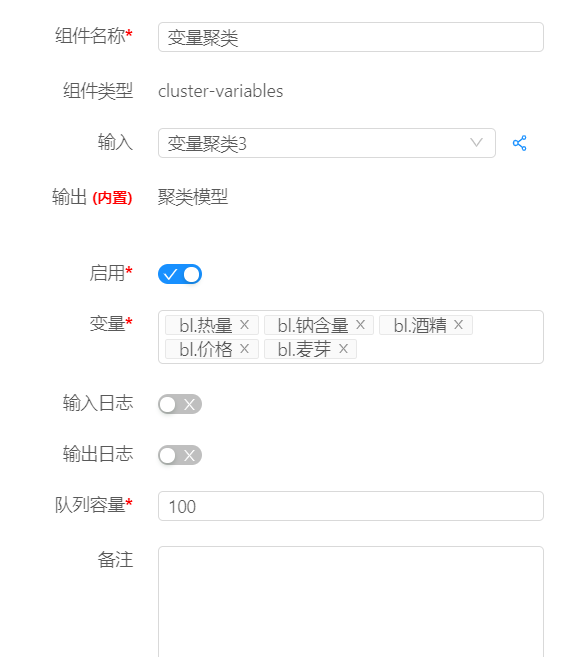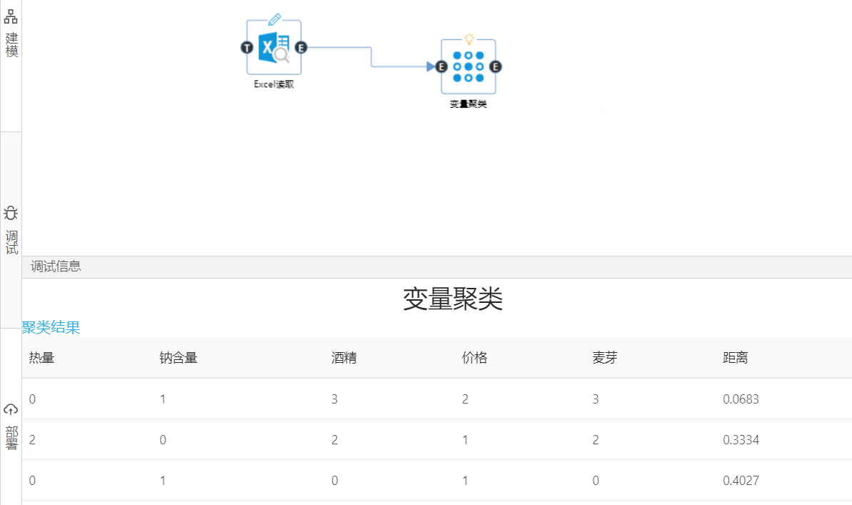 從數據大腦中的組件面板查找變量聚類組件,拖到到工作面板,配置數據源以及變量聚類組件參數,點擊運行。