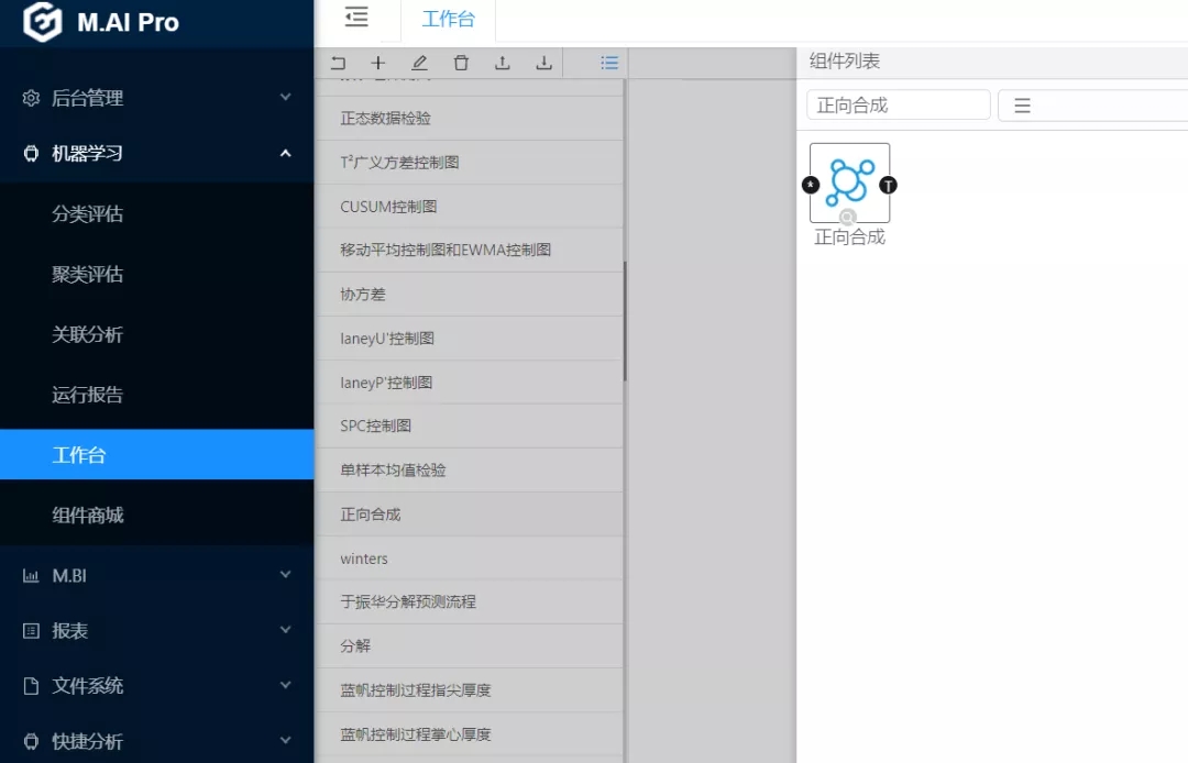 首先,打開國工數據大腦平臺。依次進行操作:機器學習-->工作臺—>新建正向合成計算流程—>拉取正向合成組件(圖1)