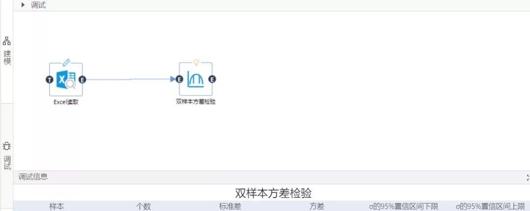 調(diào)試信息中顯示各總體的標(biāo)準(zhǔn)差和方差的樣本數(shù)量和點估計值。調(diào)試信息還顯示總體標(biāo)準(zhǔn)差或總體方差的置信區(qū)間。