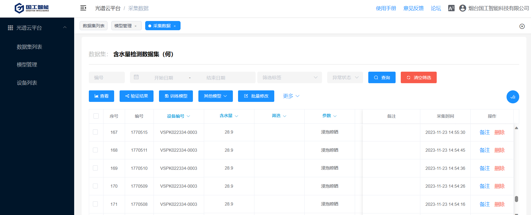 以光譜儀采集數(shù)據(jù)為前提,數(shù)據(jù)大腦平臺為依托,在線智能光譜檢測系統(tǒng)通過當前主流AI人工智能技術(shù)在線將采集到的大量數(shù)據(jù)機器學習、訓練模型,模型對生產(chǎn)材料進行在線檢測,檢測結(jié)果可以輔助生產(chǎn)過程的決策,在品質(zhì)監(jiān)控以及原料投放方面起到了重要作用。