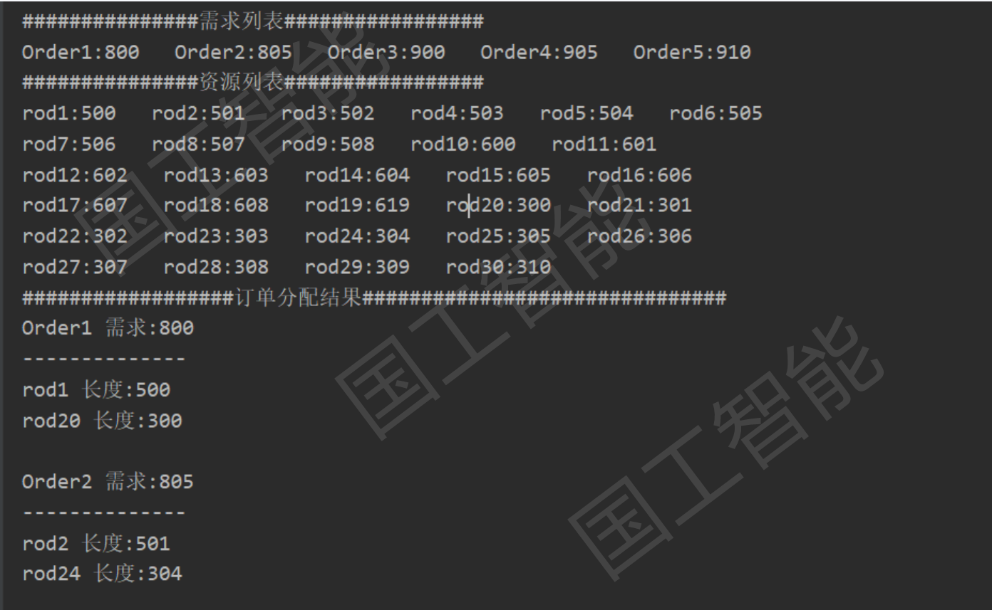 根據(jù)客戶的這個(gè)業(yè)務(wù)場(chǎng)景和解決思路,公司研發(fā)人員部建立了一個(gè)業(yè)務(wù)Demo。創(chuàng)建 5個(gè)需求,30個(gè)硅棒作為現(xiàn)有倉(cāng)庫(kù)存儲(chǔ),需求的長(zhǎng)度必須滿足,可超長(zhǎng),但超長(zhǎng)的長(zhǎng)度不可超過(guò)10,超長(zhǎng)部分越少越好,可拼接,但是不能超過(guò)3個(gè),拼接的個(gè)數(shù)越少越好。(在這里為了演示的可閱讀性,假設(shè)硅棒的原料相同,硅棒的截面規(guī)格也相同,只有長(zhǎng)度不同,長(zhǎng)度單位為毫米,下文在描述時(shí)對(duì)單位做了省略。)