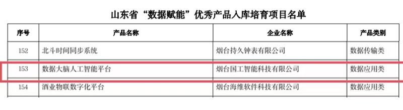 喜訊!國工智能入選山東省“數(shù)據(jù)賦能”優(yōu)秀產(chǎn)品入庫培育項(xiàng)目名單