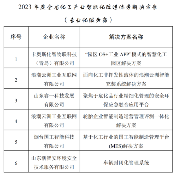 《山東僅5家!國工智能與海爾、浪潮同時被認定為化工產業智能化改造優秀解決方案專業服務》